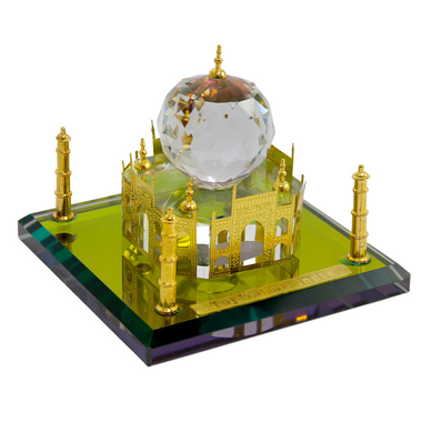 Glass and Crystal Clear Taj Mahal Showpiece Decoration for Home and Office-(8 * 6 * 6CM)-Maya Bazaar